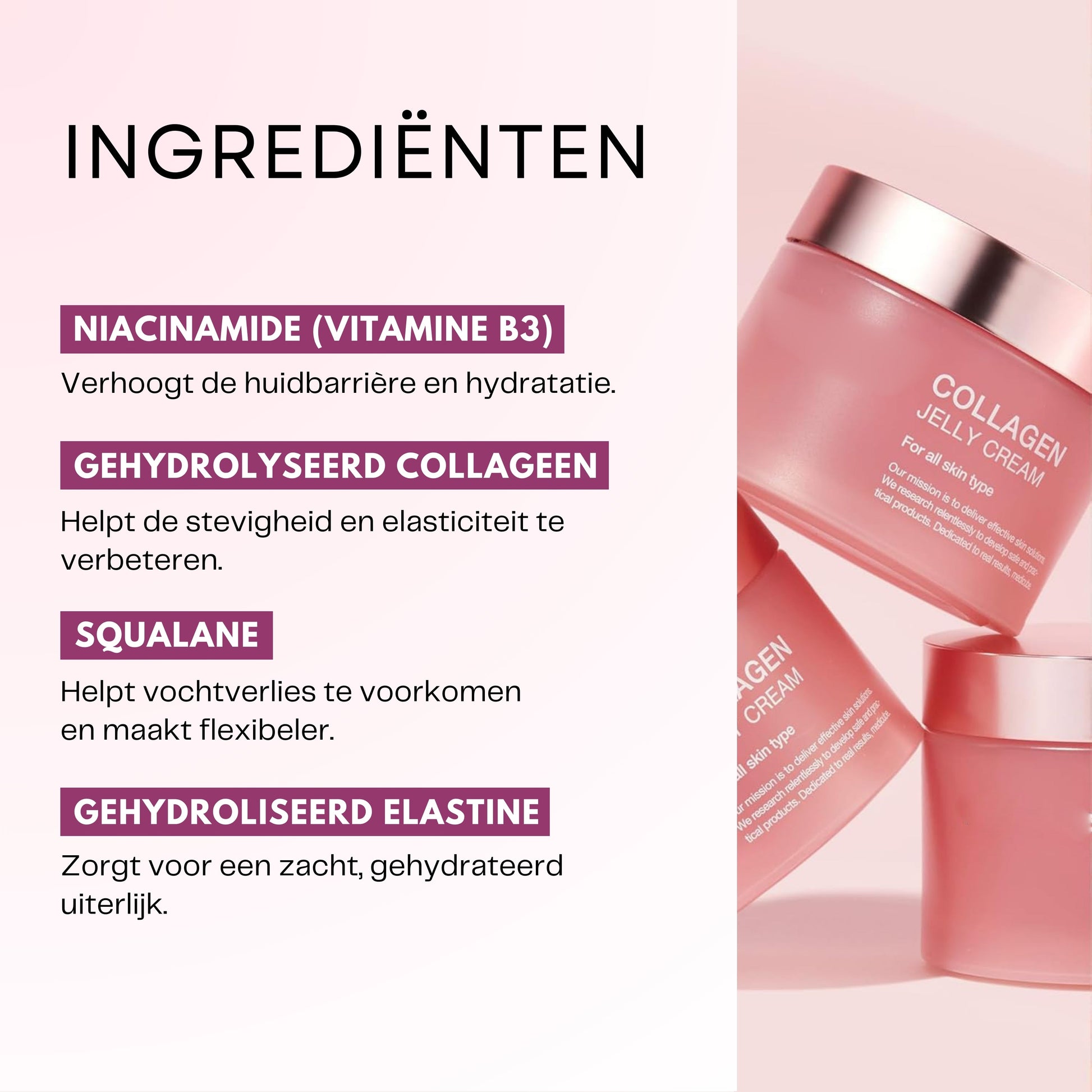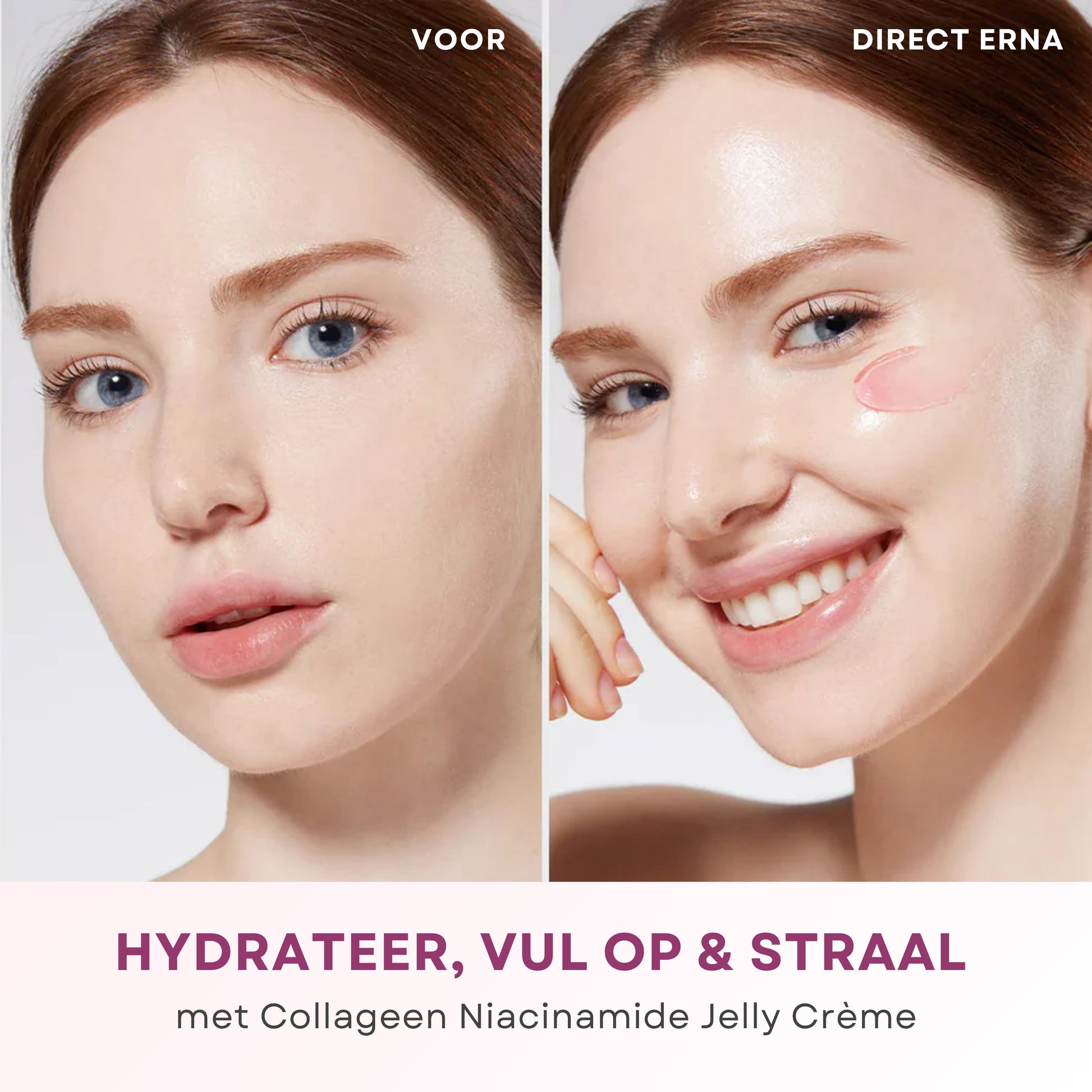 Een transparante, verfrissende jelly crème die direct zorgt voor een zichtbaar stralende, egale en vollere huid. Dankzij de krachtige combinatie van collageen en niacinamide helpt deze crème fijne lijntjes te verminderen, de huid te verstevigen en de gezichtscontouren te verfijnen.